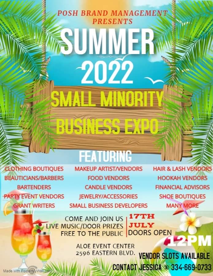 Summer 2022 Minority Business Expo is July 17th 12-4PM at ALOE Event Center.