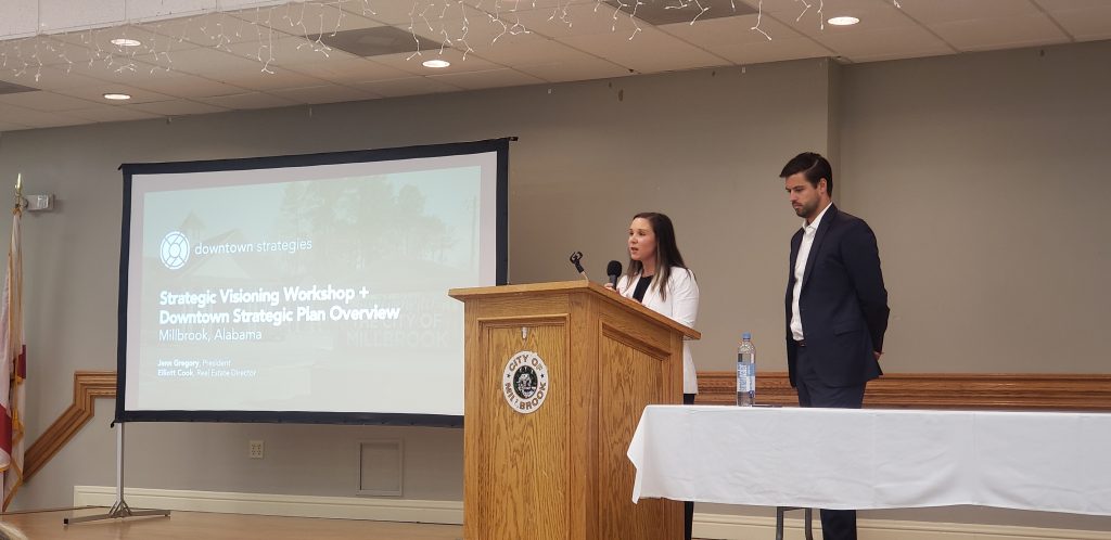 Millbrook, AL- Residents, business leaders, and community leaders gathered at the Millbrook Civic Center to hear the strategic plan for Downtown Millbrook. The 5-year plan was presented by Downtown Strategies, a division of Retail Strategies, a national community development firm.